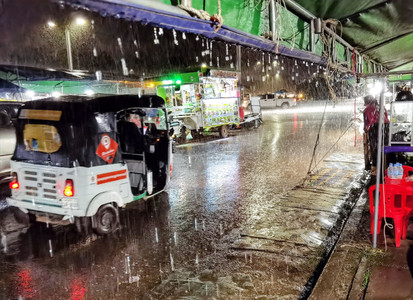 Initially, we were seated at a table with chairs for our BBQ meal, but the rain came pouring down suddenly, and we rushed to take shelter where the locals ate. The locals were used to sitting on mats on the floor to eat. They would also lie in hammocks after their meal.