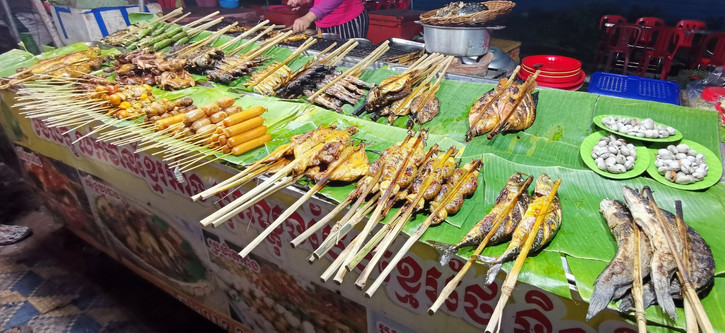 The last stall we stopped at sold a variety of BBQ food. There was chicken, fish, beef, etc, but of course, the item which Bunpheng highly recommended was their frog sausage! Well, I'm glad he did because it actually tasted really good. Everyone in our group who ate it agreed.